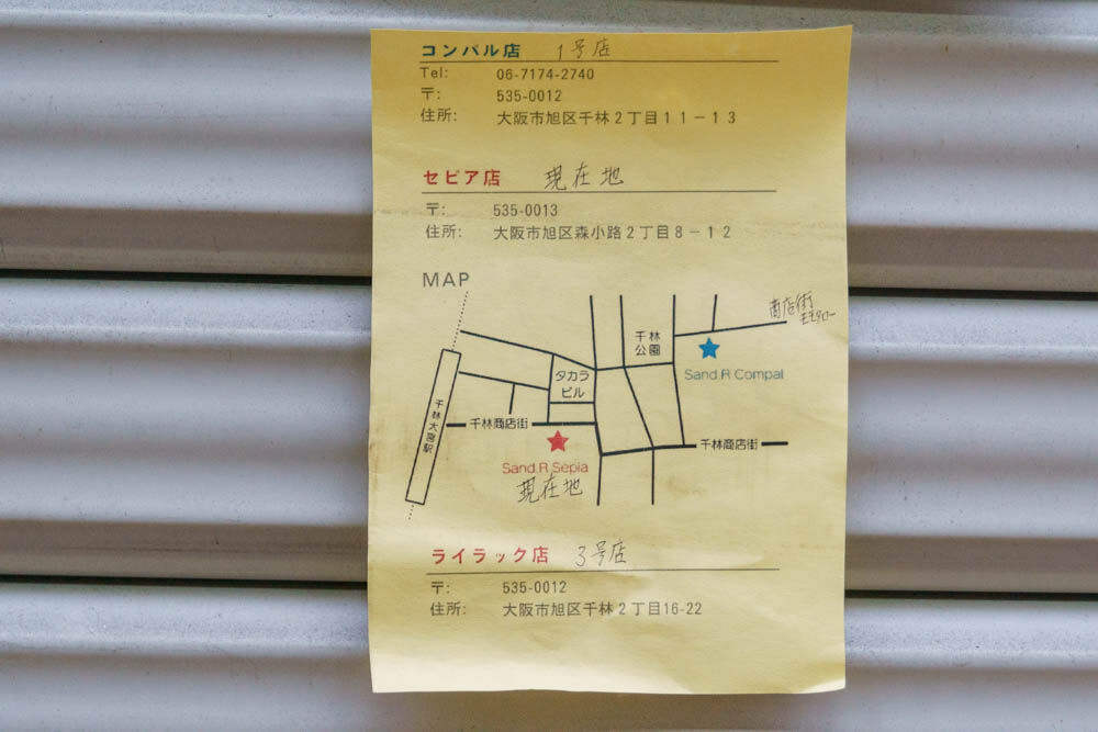 「sand R」は千林商店街で今回のお店を含め合計3店舗を展開していたサンドイッチの専門店。