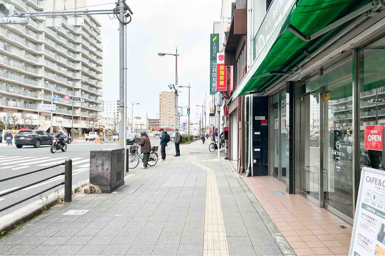 お店の前の国号1号線を南西に行くと大阪メトロ太子橋今市駅があります。