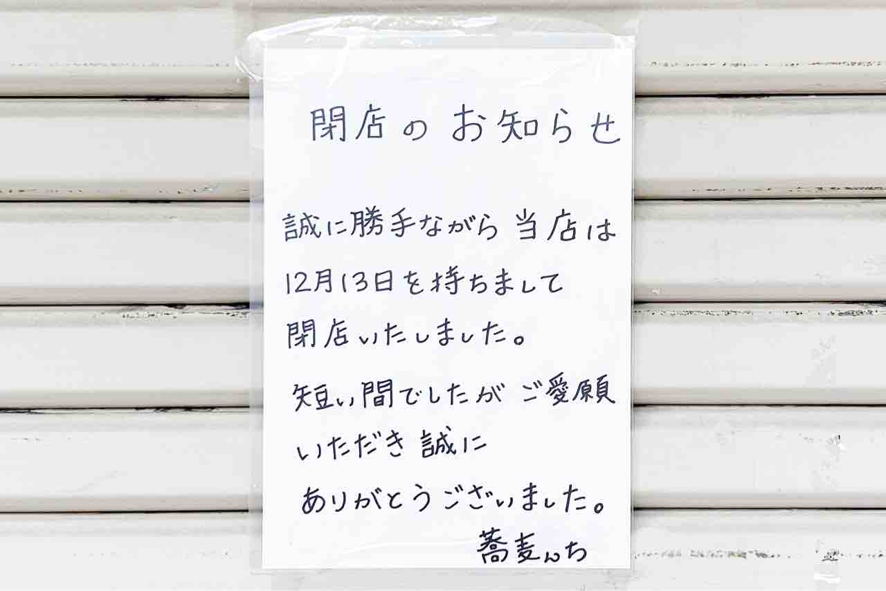 【守口】京阪本通の「蕎麦んち」が閉店してる