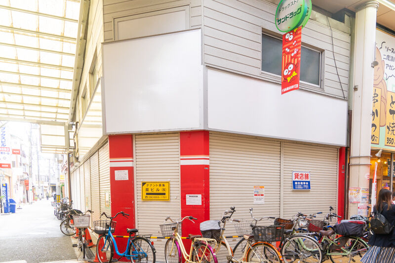 こっちにいくと千林商店街のT字路。福すしができる予定地のあたり。