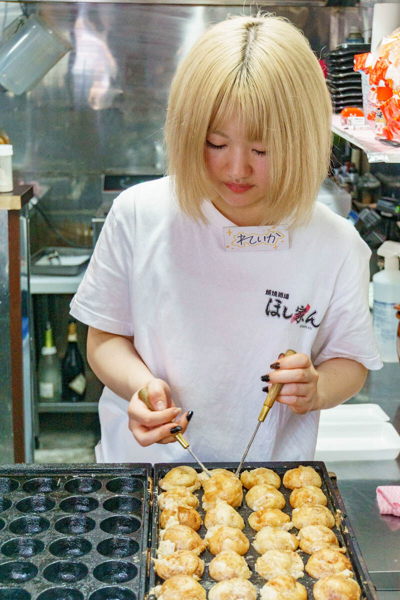 見に行ったときはお姉さんがめっちゃ手際よくたこ焼きを焼いていました!