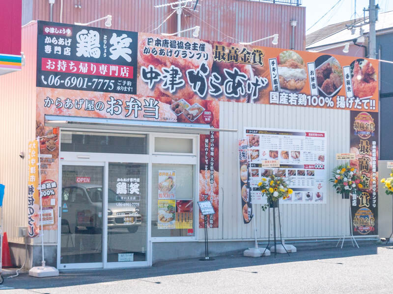 ジャガータウンちかくにつくってた唐揚げ専門店「鶏笑」がオープンしてる。アカカベ敷地内