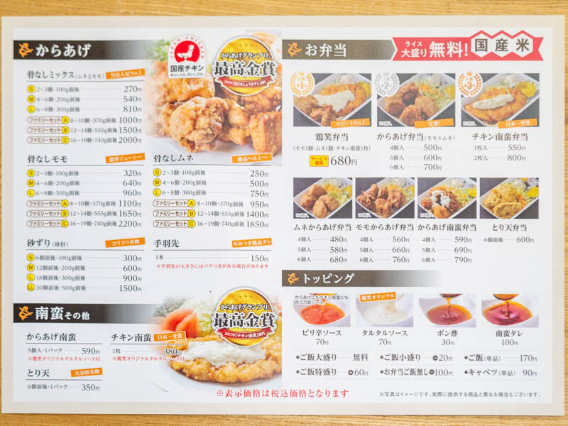 からあげだけではなく、チキン南蛮やとり天、さらにそれらのお弁当も。