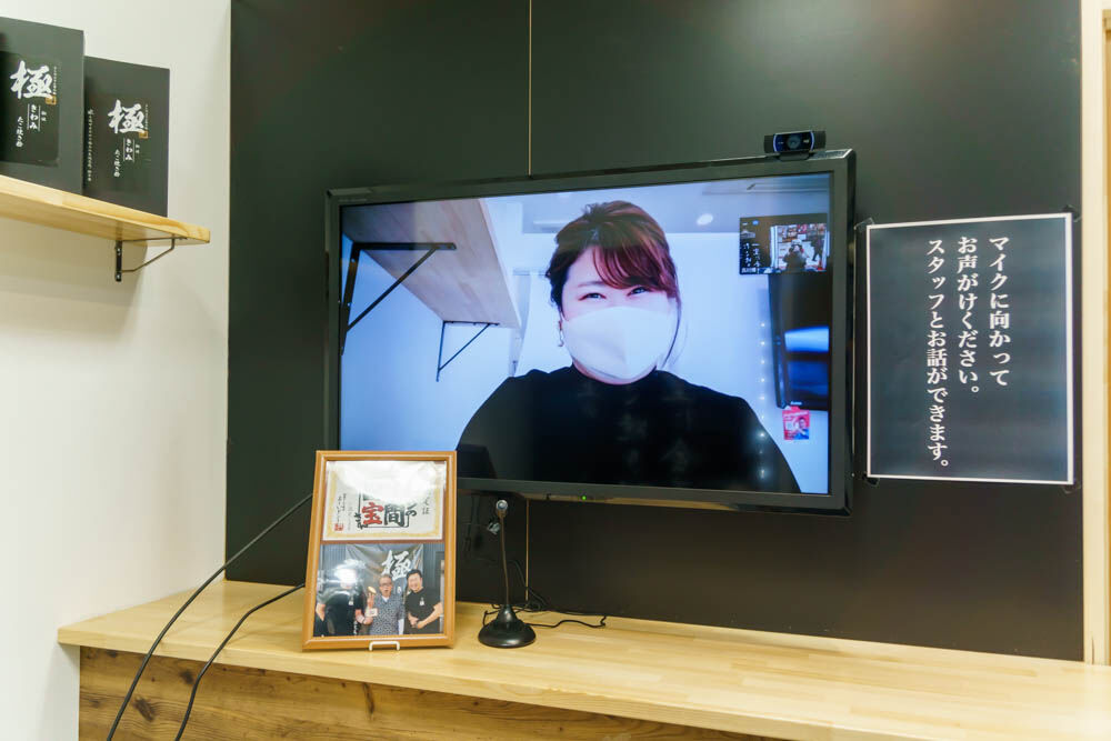 マイクの前で話しかけるとスタッフさんと繋がり、商品の説明を聞いたりできます。テレビ電話みたいな感じで向こう側からもこっちの様子が見えているので、困ったことがある時なんかに便利。