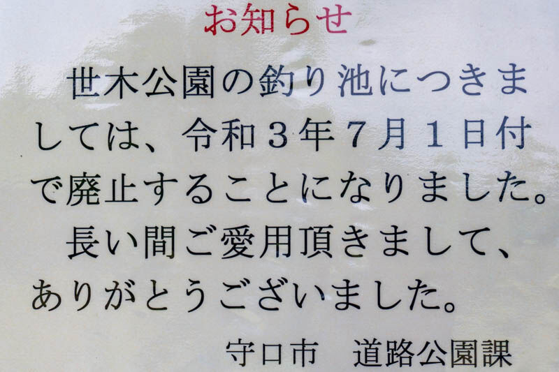 世木公園の釣り池がなくなるみたい
