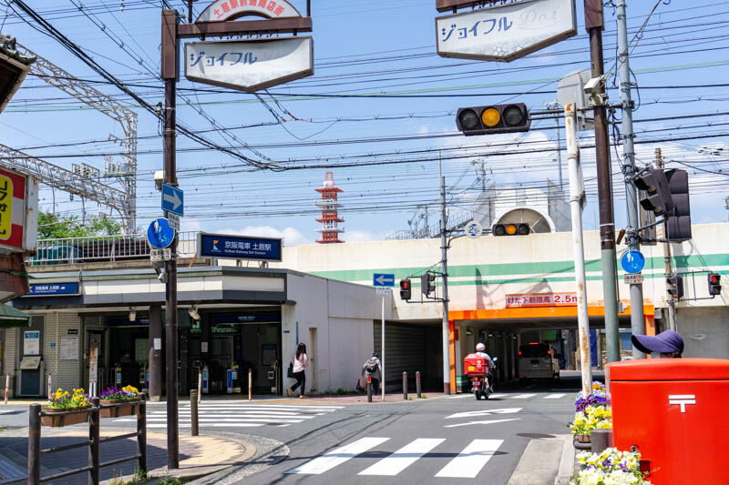 左に店舗があり、こっちに行くとすぐ土居駅が。