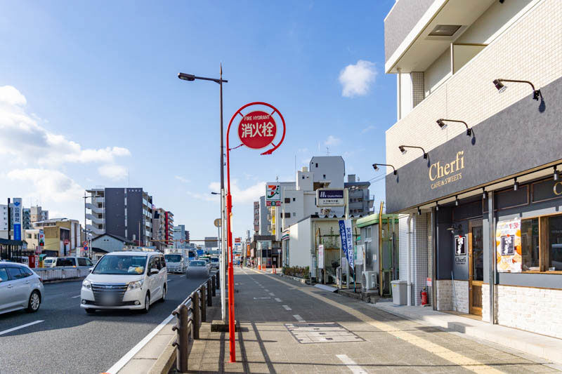 反対方向に行くとすぐ隣が太子橋今市駅で、その隣にはセブンイレブンがあります。