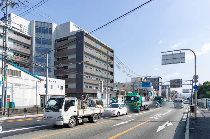 こっちに少し行くと交差点「試験場入口」があり、左折すると古川橋駅が。