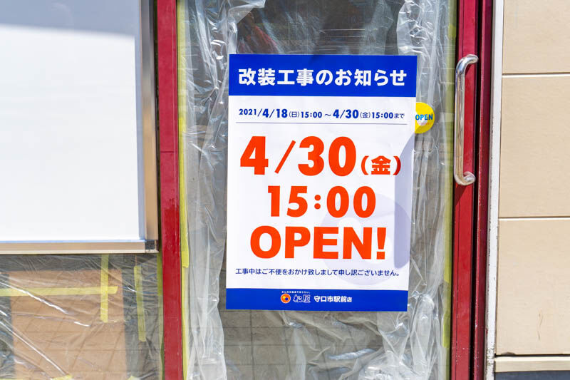 守口市駅前の牛丼屋「松屋」が店舗改装のため一時閉店してる