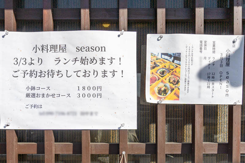 松月町につくってた「小料理屋season」がオープンしてる