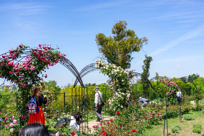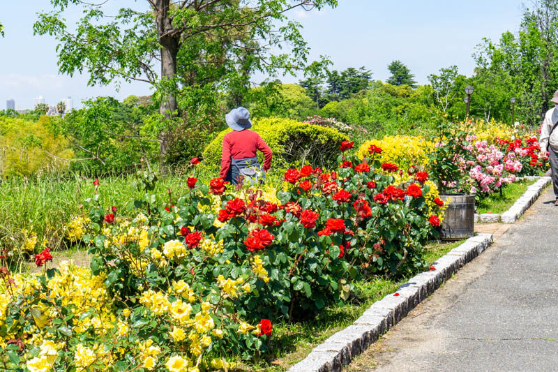場所は鶴見緑地の「風車の丘」近くのバラ園。