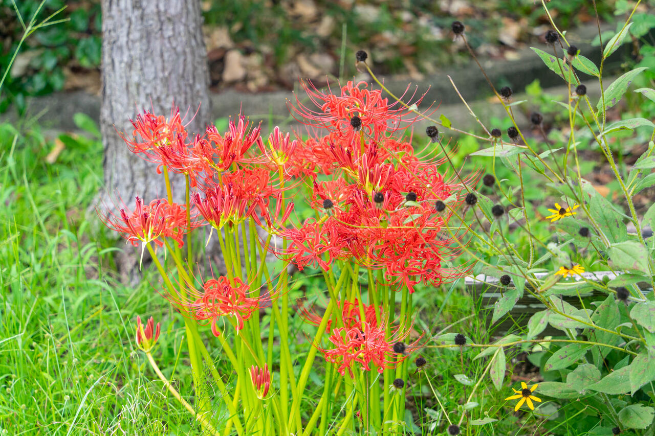 彼岸花。曼珠沙華などいろんな呼び方がありますが、基本的には唐突にはえてくるイメージ。