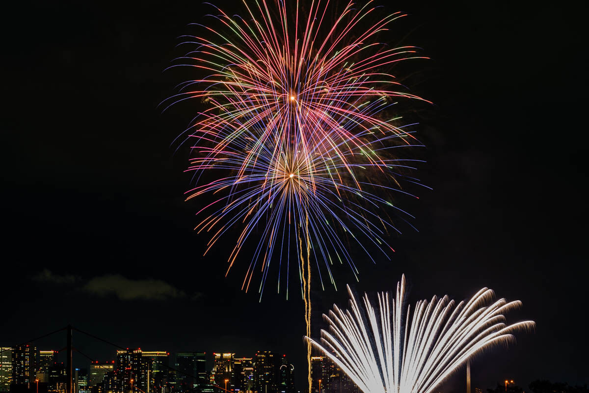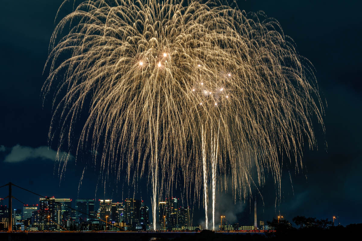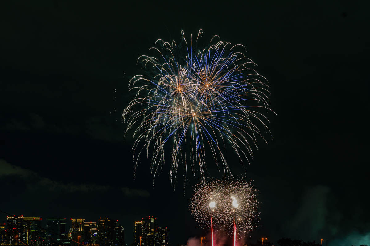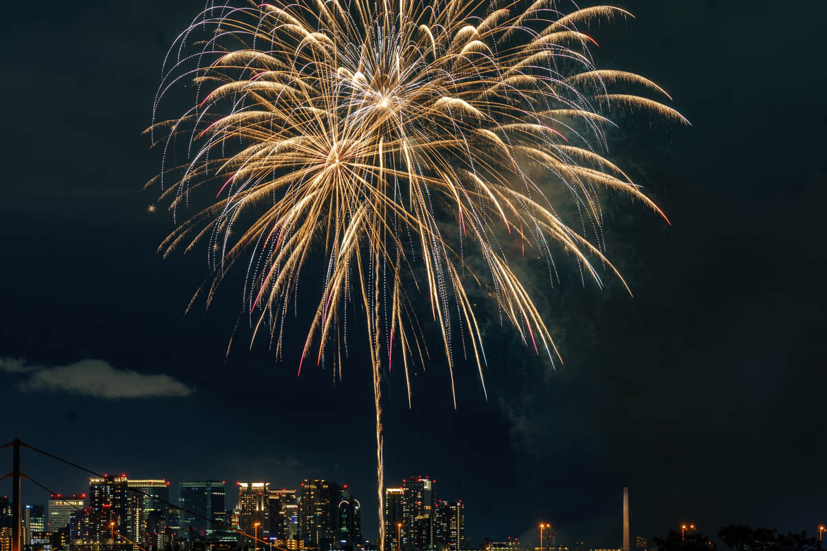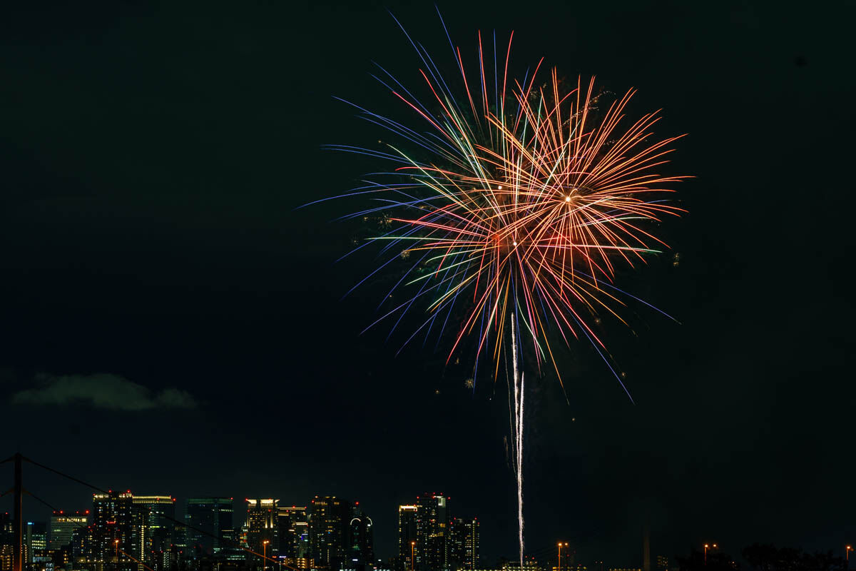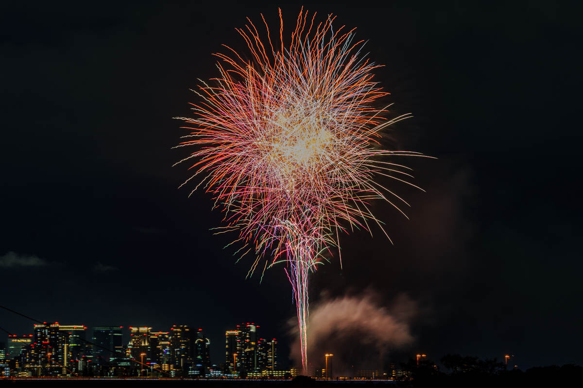 花火が上がったのは19時から。背景のビルがいい感じですね!