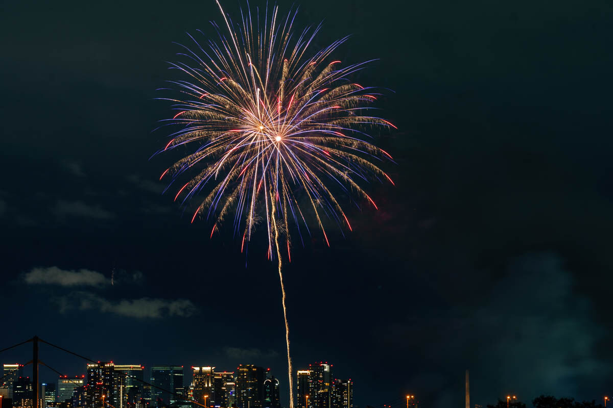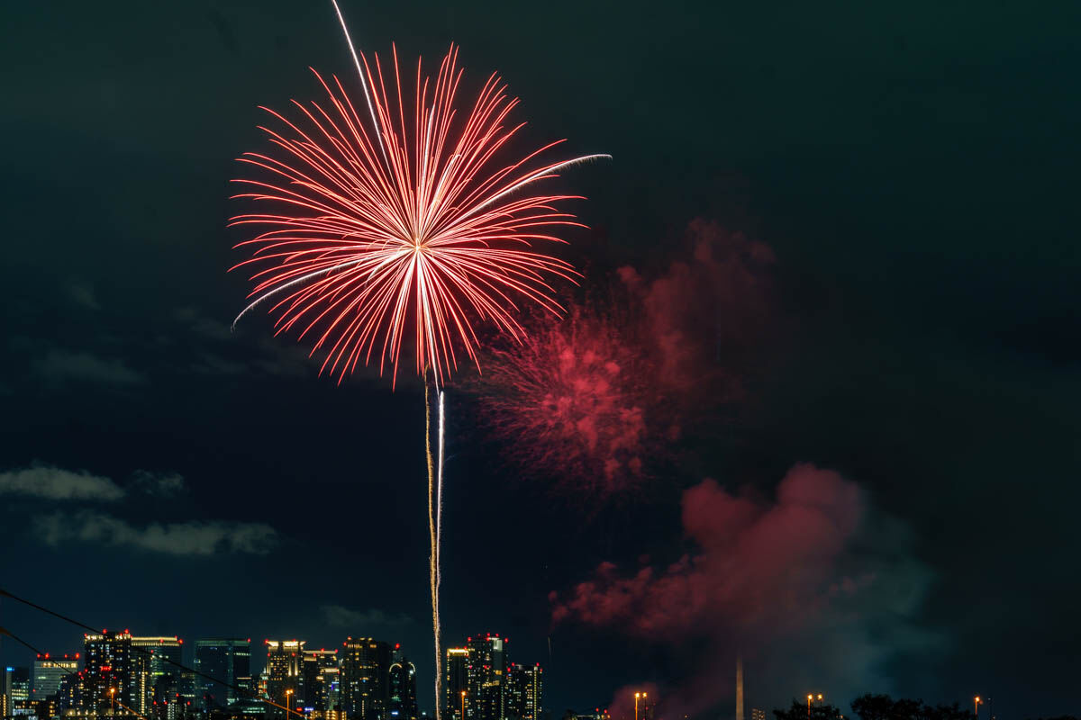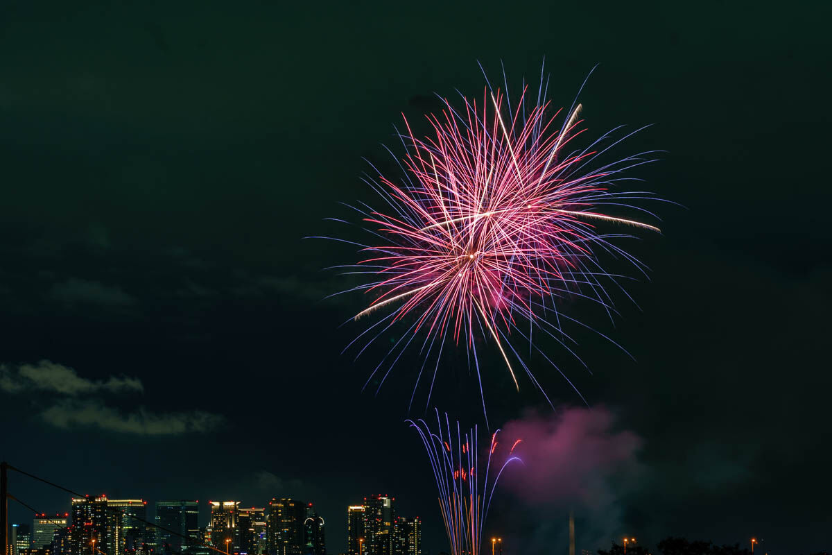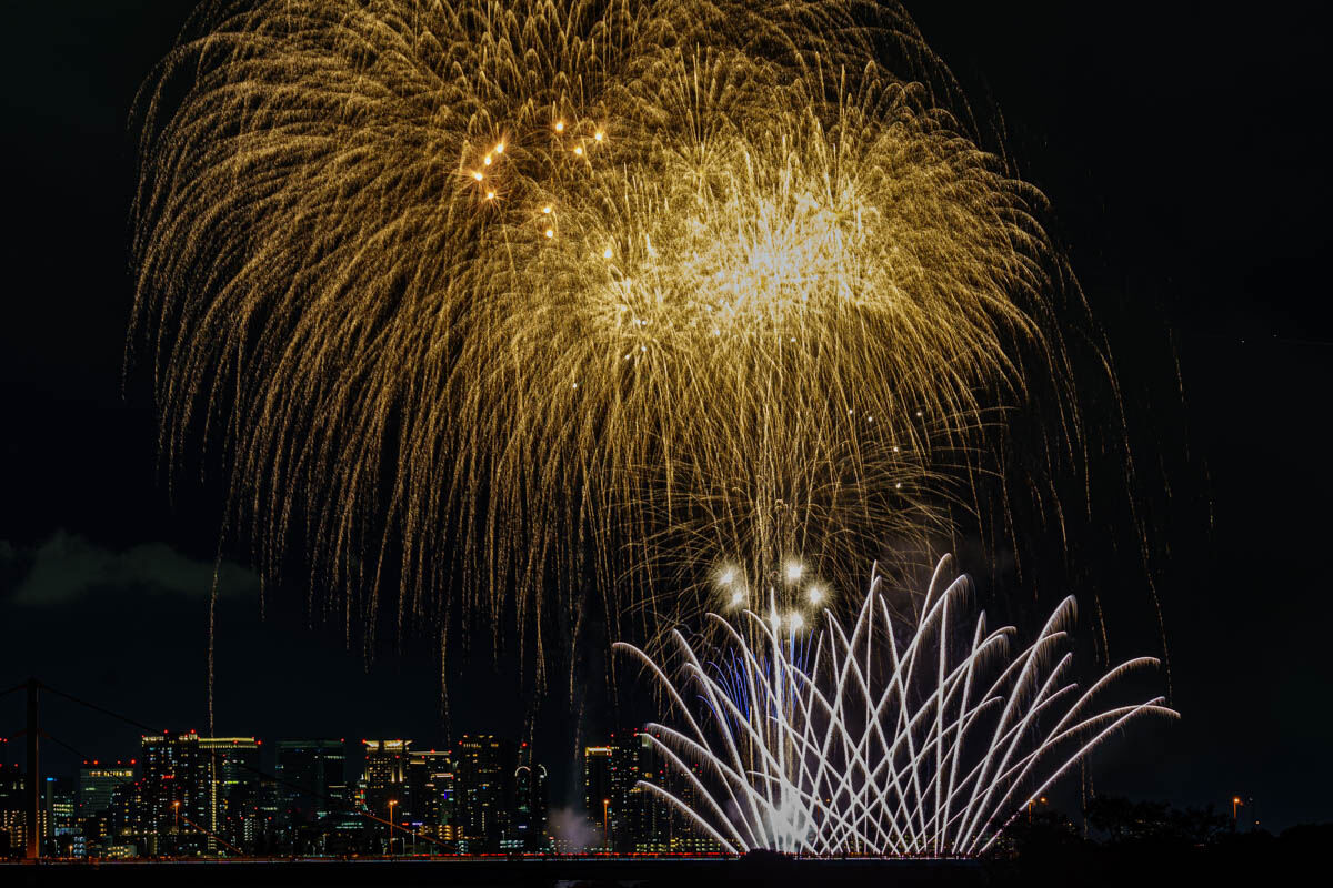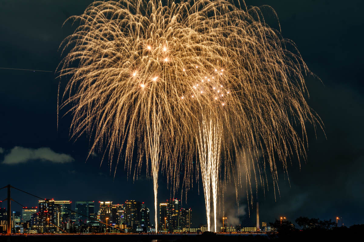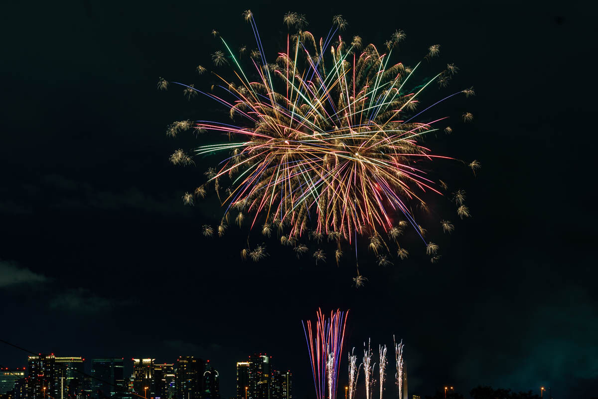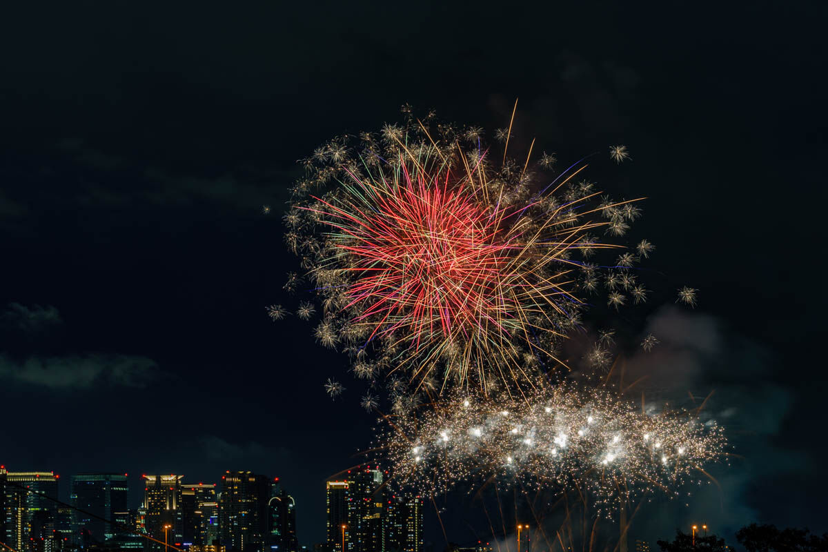 花火が上がったのは19時から。背景のビルがいい感じですね!