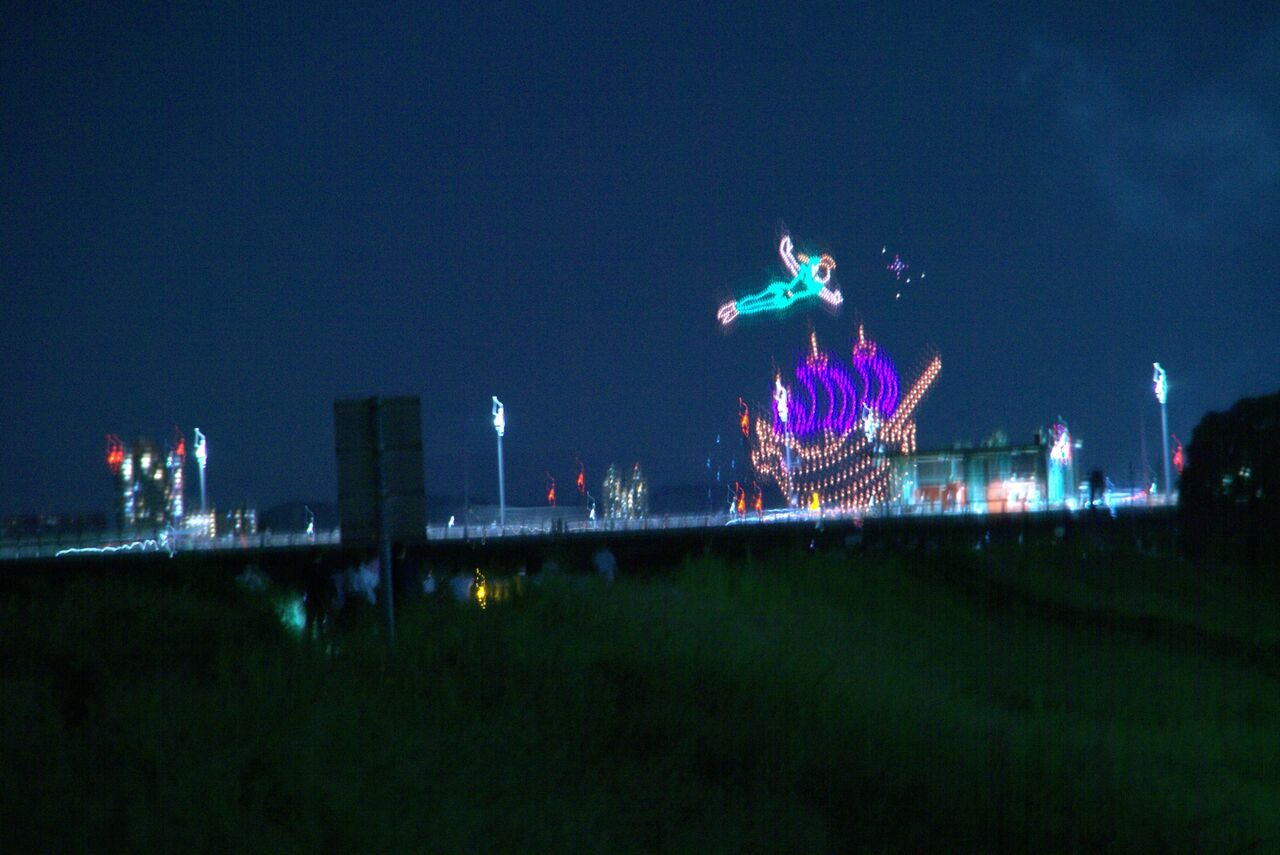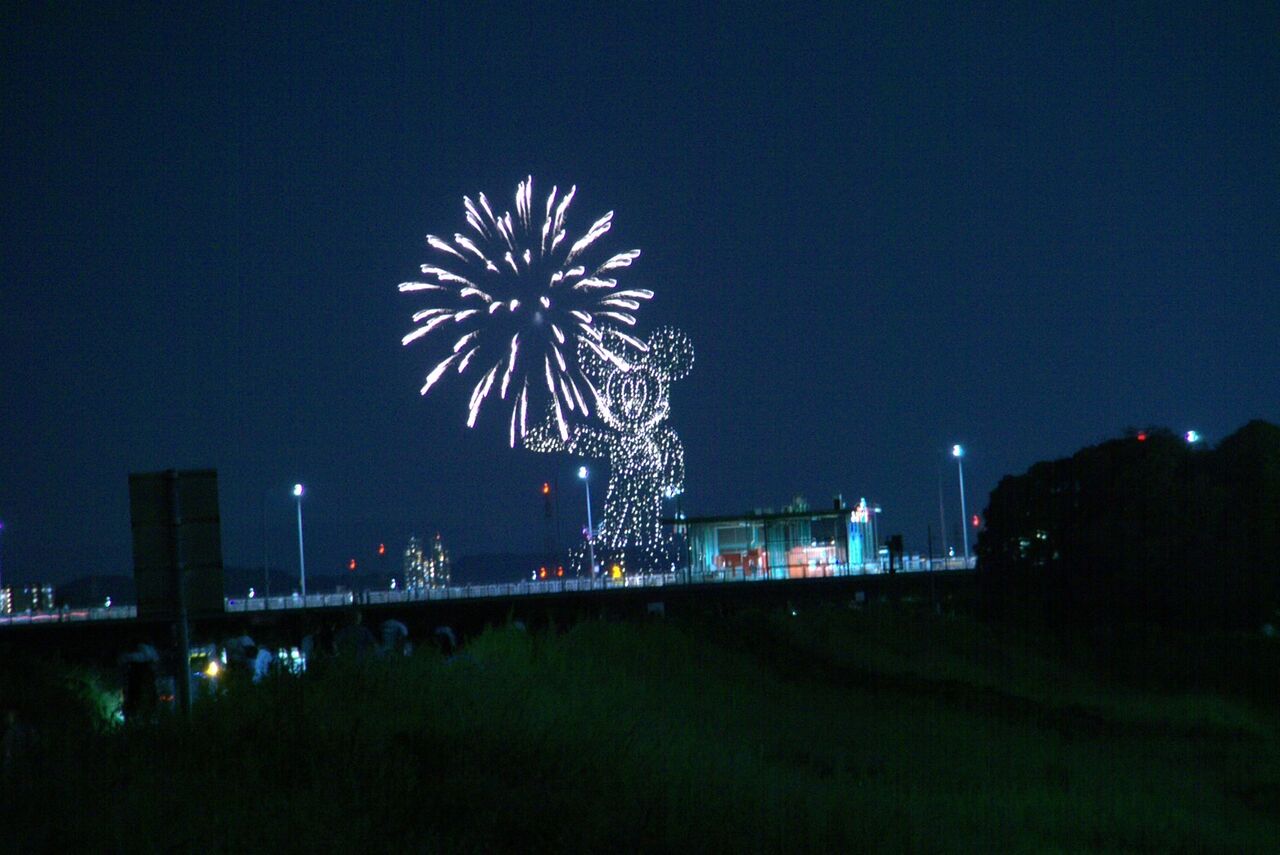 ディズニーとの共演ドローンショー、心奪われるくらい素敵でした。花火もたくさん打ち上がり河川敷も大盛り上がりでしたよ〜!