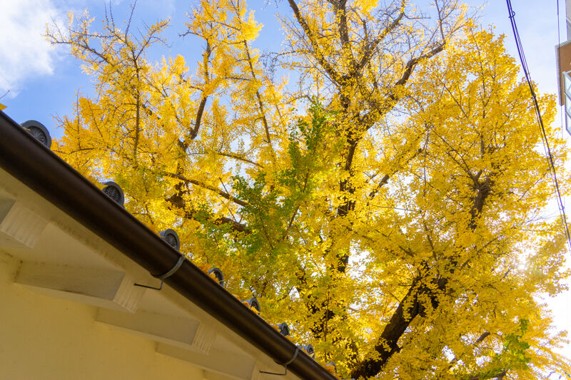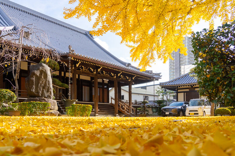 守口駅ちかくのお寺のイチョウが見頃をむかえて黄色まみれ!府の天然記念物【もりつーフォト】
