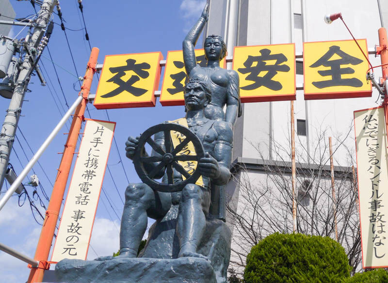 交通安全を呼びかける成田山不動尊のお不動様【もりつーフォト】