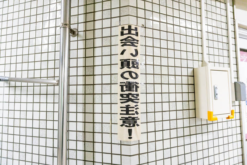 場所はホームからの階段を降りてきてすぐの壁。