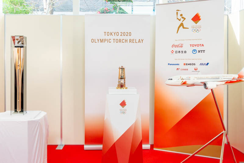 隣には聖火リレーに使われるトーチの展示も。