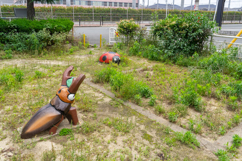 でもまぁこのとおり、クワガタさんの周りは広場的なスペース(元砂場)がありますし、いろんな遊びができま……