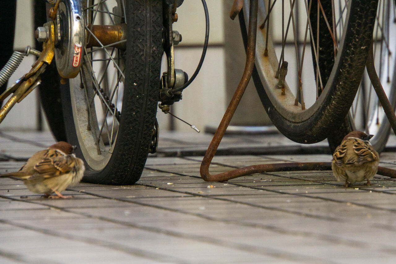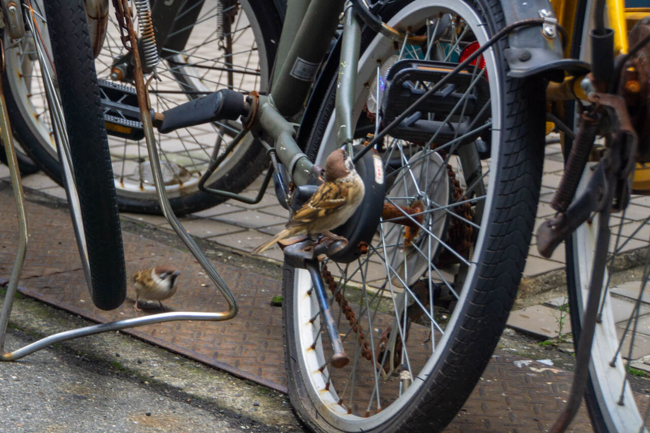 自転車の下で寒さに耐えているようでした。この自転車の密集具合が風を妨げているのかと。