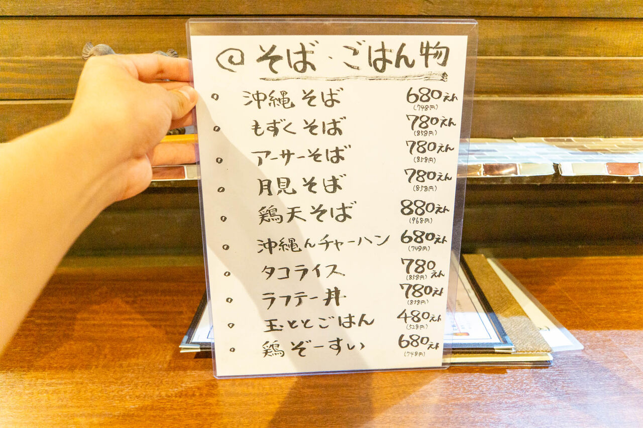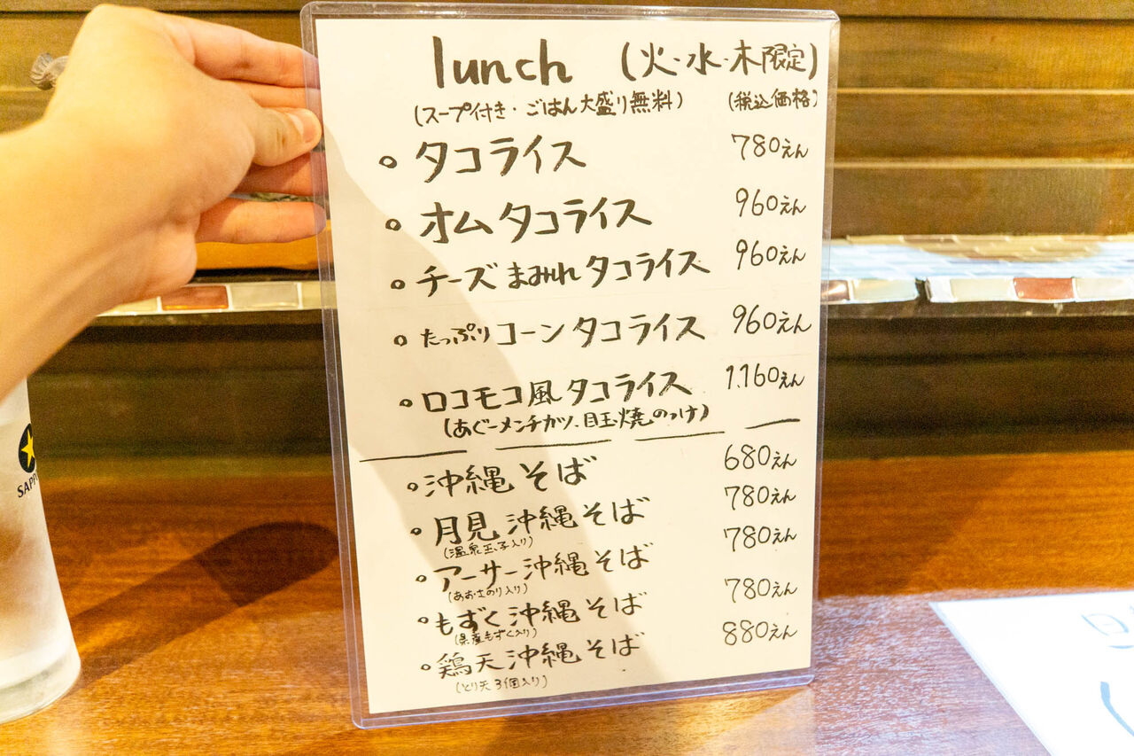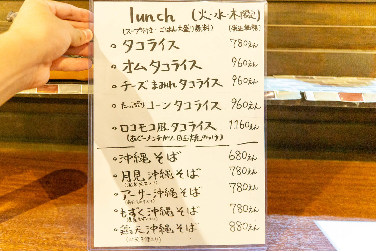 ランチメニューはこんな感じ。タコライスや沖縄そばが中心の様子。