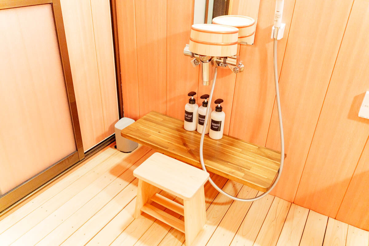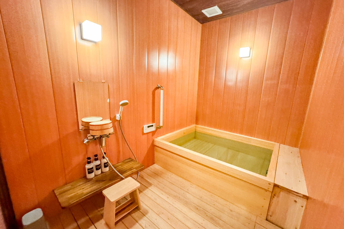 こちらは貸切のヒノキ風呂です。めっちゃヒノキのいい匂いでリラックス。
