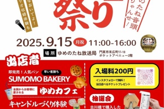 - 【門真】古川橋駅ちかくでゆめのたね祭りが開催。9月15日。たこせん無料