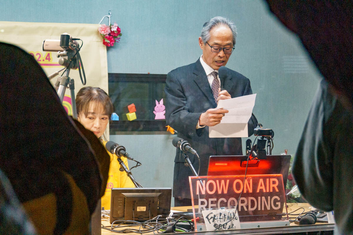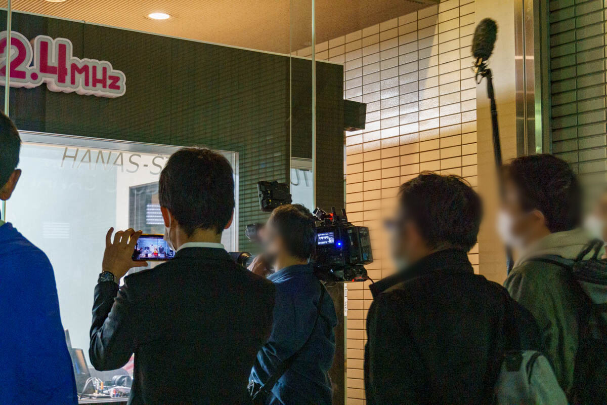 そして、放送後はFM-HANAKOに携わっている方々やパーソナリティの方がスタジオから出てきて、深々とお礼をされていました。それとともに大きな拍手が。