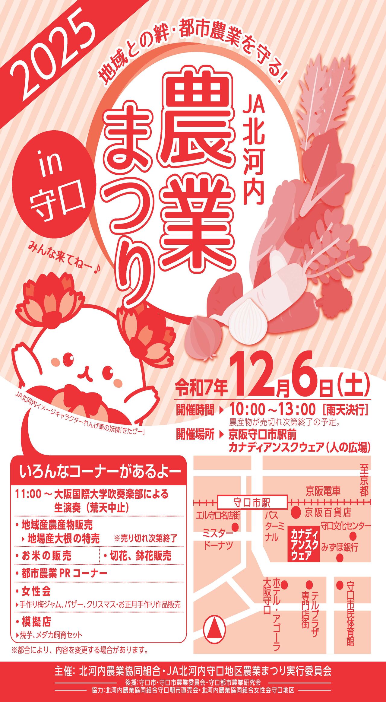 京阪守口市駅前カナディアンスクエアで「2025 JA北河内農業まつりin守口」が開催されるようです。