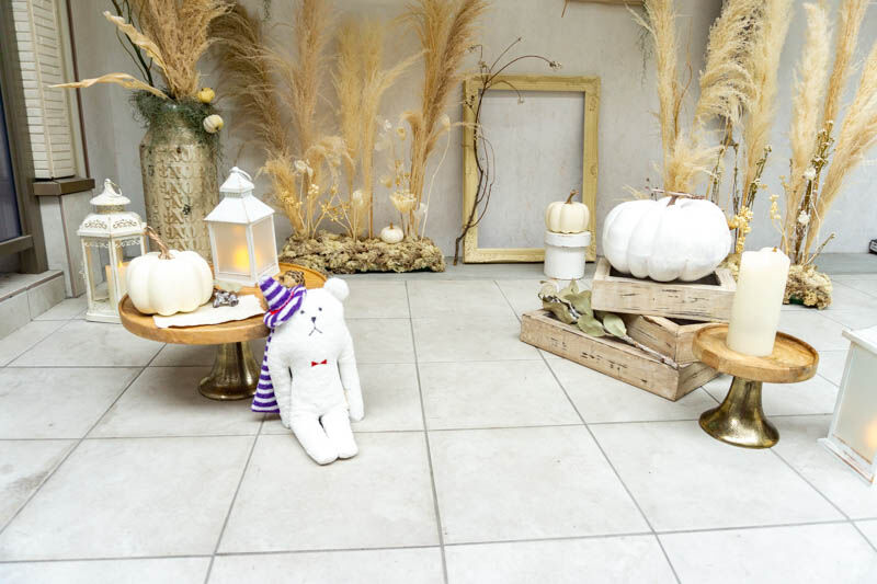 ほんとは仮装した子供を連れてきて撮りたかったんですが、時間的にこの日は無理だったので子供が愛用しているぬいぐるみを拝借。