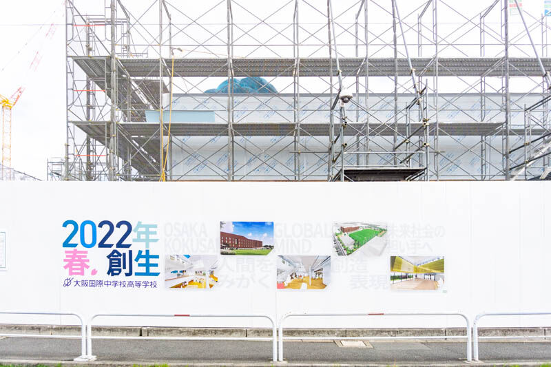 松下町につくってる「大阪国際中学校高等学校」がちょっとできてきてる。2022年春開校