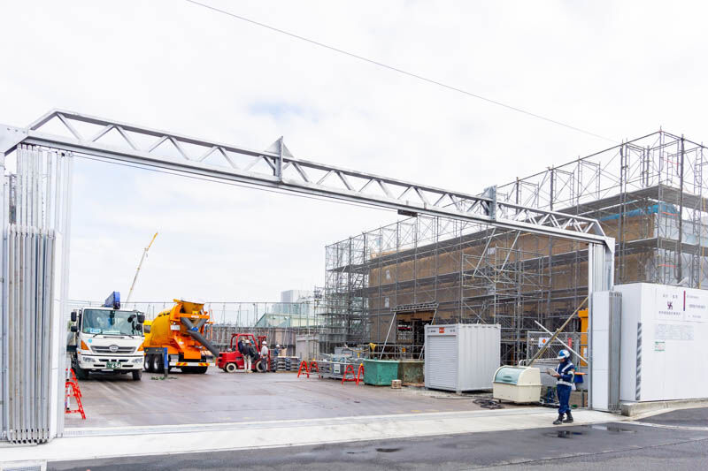 フェンスには「2022年春、創生」の文字や完成イメージなどが。