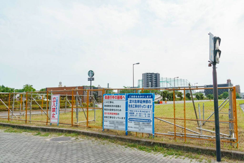 (鶴見緑地前あたりの淀川左岸延伸部の工事現場)
