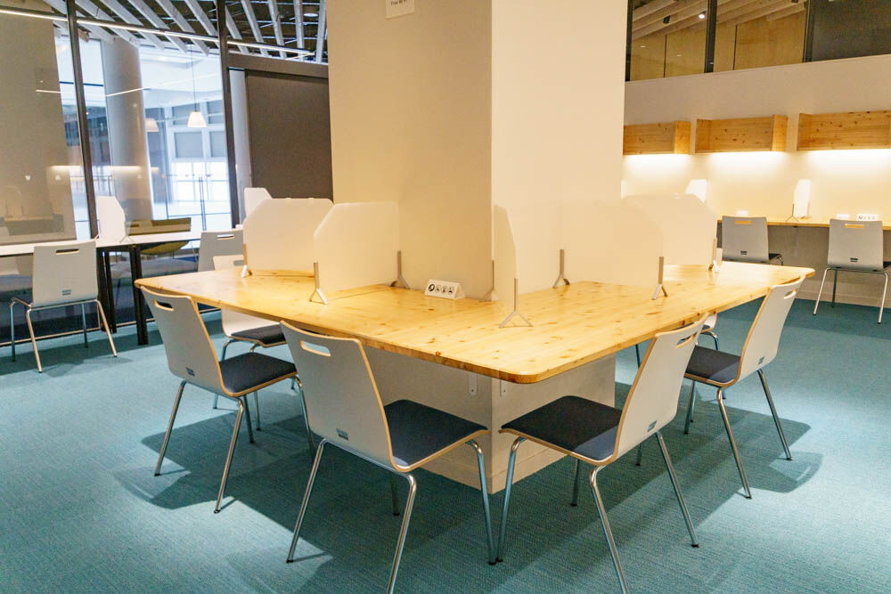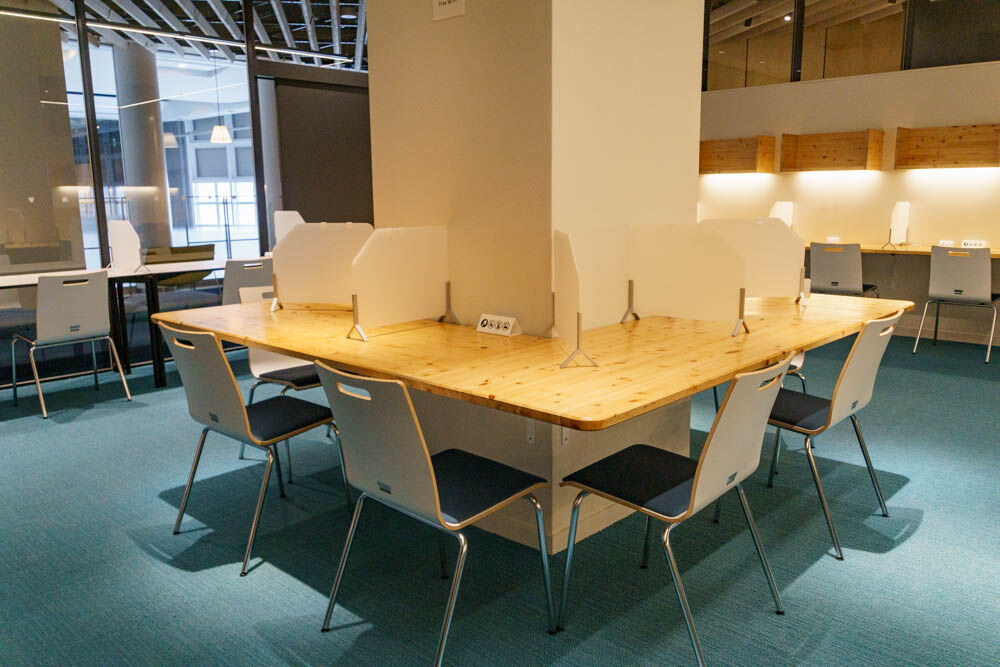 本を読んで調べ物するのもよし、スマホや持ち込みのPCを利用して勉強していただくのもよし。