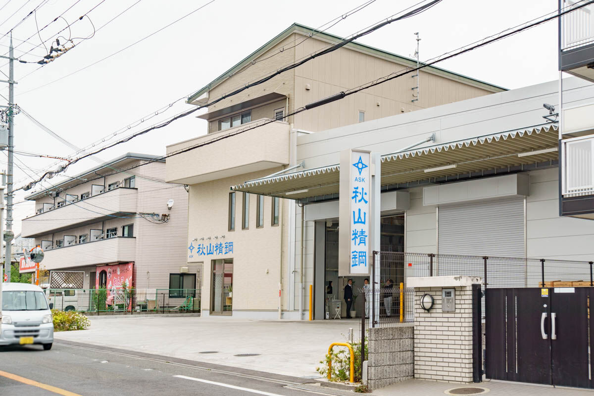 秋山精鋼(→公式サイト)は精密機器、電子機器などに使用する特殊な鋼をつくっているメーカー。公式サイトによると門真市三ツ島6-14-14に移転した模様。