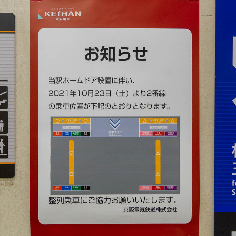 京阪初となるホームドア。引き続き見ていこうと思います。