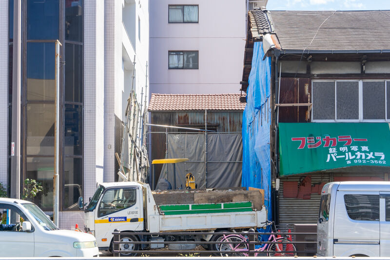 国道1号線沿い京阪本通で「珈琲専門店ミカ」の建物の解体工事が行われています。