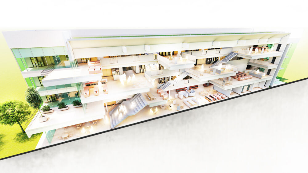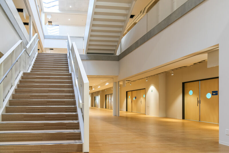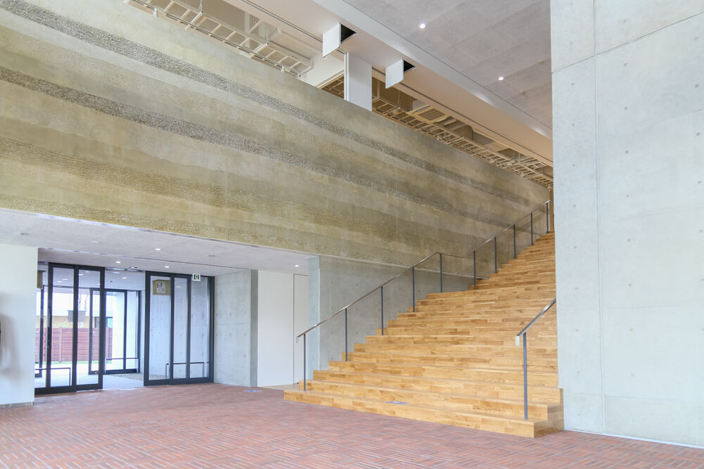 吹き抜けの階段部分。新時代の建物という雰囲気がします。