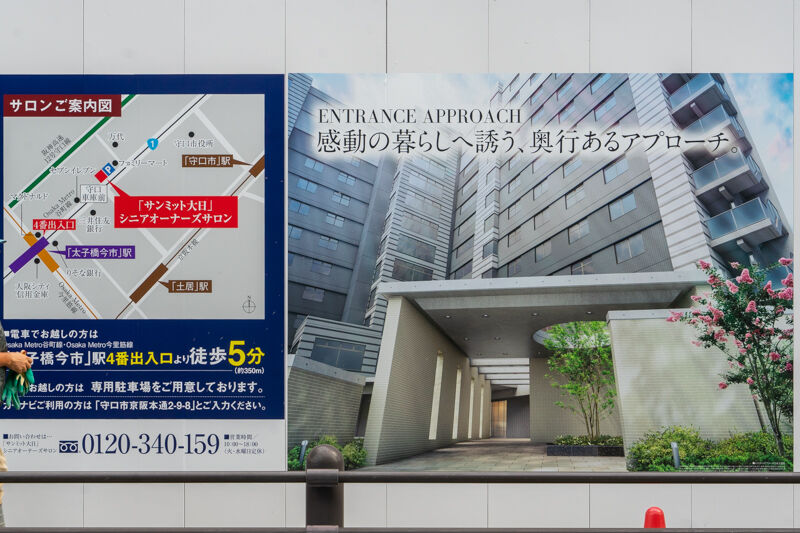 他にも壁面にはシニア向け分譲マンションという記載があり、最近流行りのシニア向けのマンションであることがわかります。