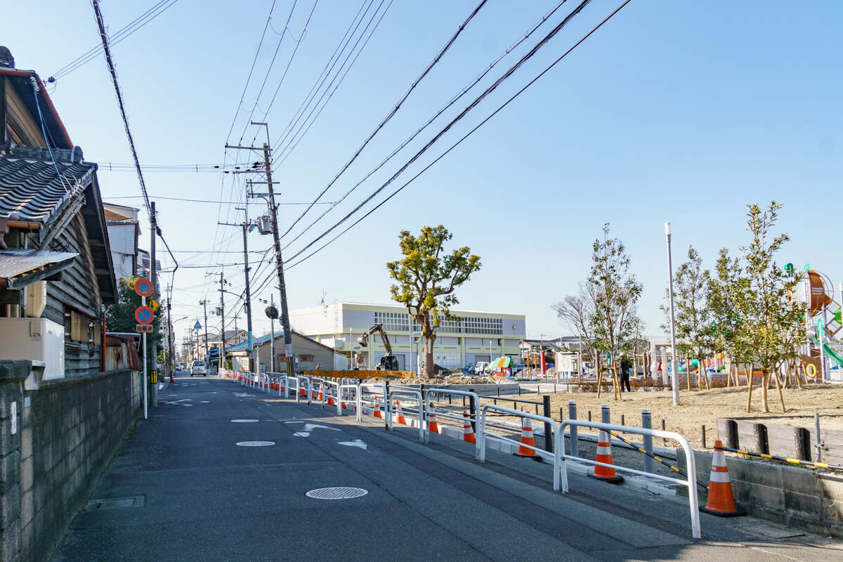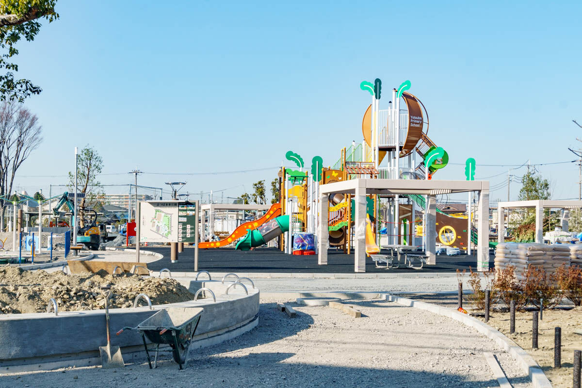 2022年12月で解体工事がおわり2023年からよつば未来公園が整備される予定だったので、3月上旬に見に行ったらこのとおり、もうめっちゃできてきていました。