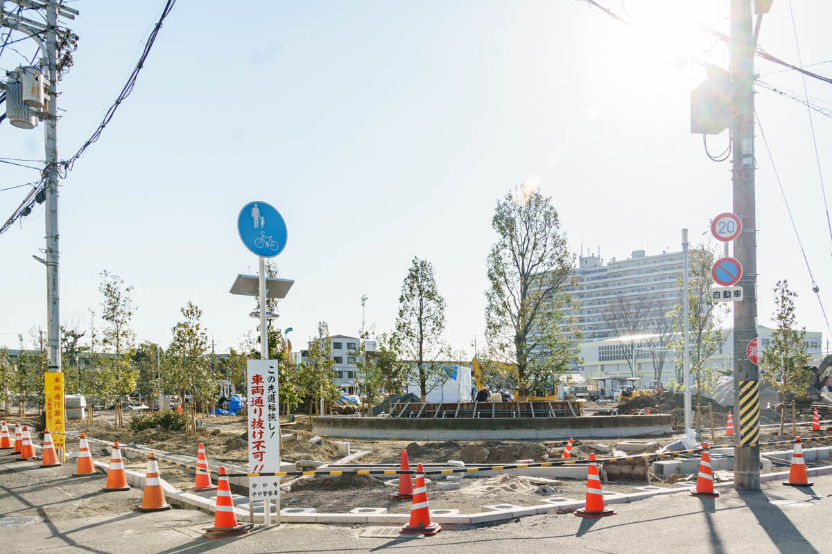 【守口】東小跡地につくってる「よつば未来公園」がだいぶできてきてる。コミュニティバスの停留所も