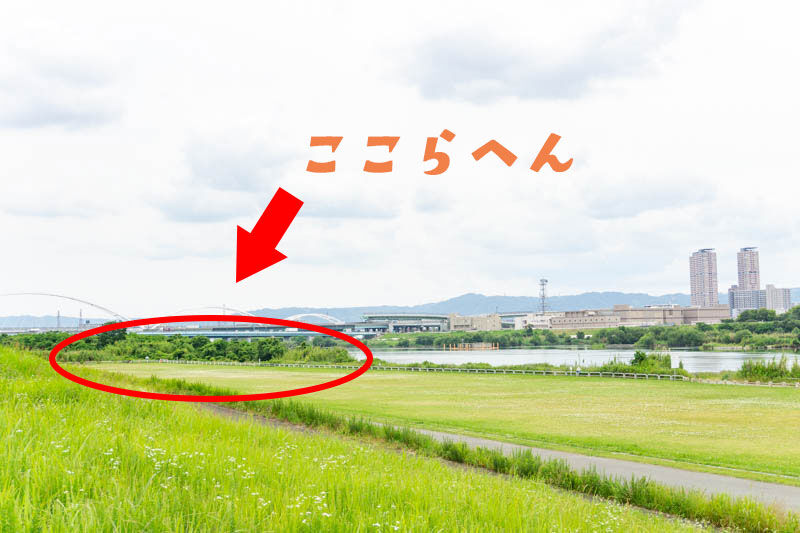 こちらは対岸の、庭窪ワンドや淀川河川公園八雲地区テニスコートがあるあたりかな?